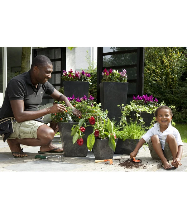 Der Blumentopf Ella von Artstone besteht aus 100 % recyceltem und UV-beständigem Material, sodass er eine nachhaltige Lösung darstellt, die langanhaltende Qualität garantiert. Vor allem das einzigartige Bewässerungssystem begeistert vom ersten Moment an: Aufgrund des Speichereinsatzes versorgen sich Ihre Lieblinge optimal mit Wasser, sobald Bedarf dafür besteht. Sie erhalten zudem einen Topf, der frostbeständig ist, wenn Sie Staunässe verhindern. Nicht zuletzt können Sie den Kunststoff-Pflanztopf auch im Innenbereich einsetzen und hier vom Bodenstöpsel profitieren, der ein Auslaufen des Wassers nicht zulässt. Entscheiden Sie sich jetzt für den praktischen Blumentopf von Artstone und erfreuen Sie sich an einem modernen Pflanzgefäß für die Terrasse, den Balkon oder den Wintergarten!