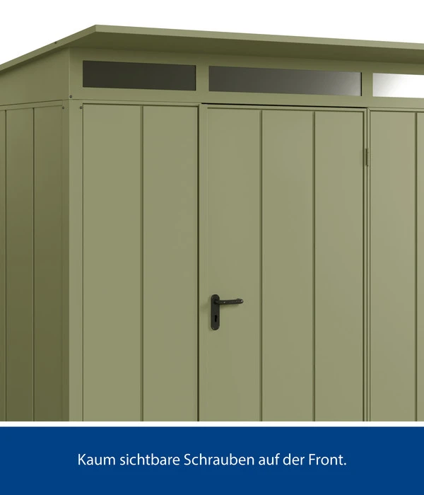 Wünschen Sie sich schon länger einen Ort, an dem Sie sämtliche Gartengeräte problemlos und sicher verstauen können? Dann werden Sie das Berry-Gerätehaus Modern-P Typ 2 lieben. Es ist der perfekte Ort, um Ihre Gartengeräte ordentlich zu platzieren. Auch Fahrräder, Autoreifen, E-Bikes oder Holz finden problemlos im Inneren Platz. Das modische und schlichte Design passt garantiert wunderbar auch in Ihren Garten. Die hochwertige Verarbeitung aus Stahl und Aluminium gewährleistet zudem Langlebigkeit und Stabilität. Ein praktischer Dachvorsprung schützt Sie darüber hinaus bei Regen vor Nässe.