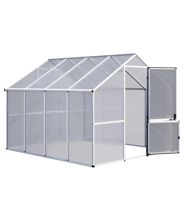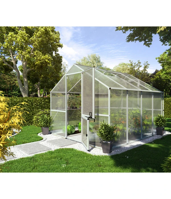 Möchten Sie Ihren Außenbereich in ein kleines Paradies verwandeln, in dem zahlreiche Pflanzen wachsen und gedeihen? Streben Sie eine naturnahe Atmosphäre an, die Ihnen jeden Tag aufs Neue Freude bei der Gartenarbeit macht? Dann sollten Sie einen Blick auf das KGT Gewächshaus Enzian IV richten, das sowohl für Profis geeignet ist als auch einen idealen Einstieg in die Welt der Gewächshäuser bietet. Sie erhalten ein robustes Produkt, dessen Gestell aus Aluminium Stabilität und Langlebigkeit aufweist. Montieren Sie Ihren Neuzugang in Windeseile und schaffen Sie schnell beste Voraussetzungen für Ihre grünen Lieblinge.