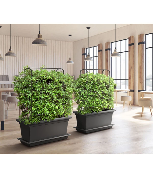 Dank des witterungsbeständigen Materials eignet sich der Blumenkübel hervorragend für den Außenbereich, denn er ist sowohl frostbeständig als auch vollkommen winterfest. Geplatzte Pflanzgefäße gehören damit der Vergangenheit an und Sie können dem Winter entspannt entgegensehen. Der Blumenkasten macht aber nicht nur draußen einiges her, mit seinem dezenten Aussehen fügt er sich auch im Indoorbereich mühelos ins Mobiliar ein und ermöglicht es Ihnen, kinderleicht eine grüne Insel zu schaffen. Achten Sie bei Verwendung im Innenbereich bitte darauf, die Bodenlöcher zu verschließen! Freuen Sie sich auf frisches Obst und Gemüse aus eigenem Anbau und bestellen den smarten Pflanztopf gleich hier online.