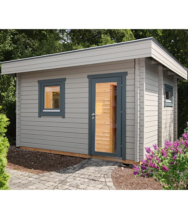 Sie lieben es, nach einem anstrengenden Arbeitstag die wohltuende und gesundheitsfördernde Hitze einer Sauna zu spüren und sich danach auf einer Liege zu entspannen! Es gibt nichts Besseres für Sie, um den Stress des Alltags zu vergessen? Aber natürlich! Wenn Sie nämlich eine Sauna im eigenen Garten haben. Mit dem Wolff Finnhaus Saunahaus de luxe Keijo 70 können wir Ihnen ein echtes Premium-Modell vorstellen, das jeden Saunagang zu einem besonderen Erlebnis macht. Denn im Inneren erwarten Sie zwei Räume: die Saunakabine und ein Vorraum, der groß genug ist, um Liegen aufzustellen, auf denen Sie nach den Saunagängen ruhen können. Und mit dem modernen Flachdach und den zahlreichen Glaselementen ist das Haus auch ein Schmuckstück in jedem Garten. Gönnen Sie sich den Luxus einer eigenen Sauna im Garten und bestellen Sie das Wolff Finnhaus Saunahaus de luxe Keijo 70!